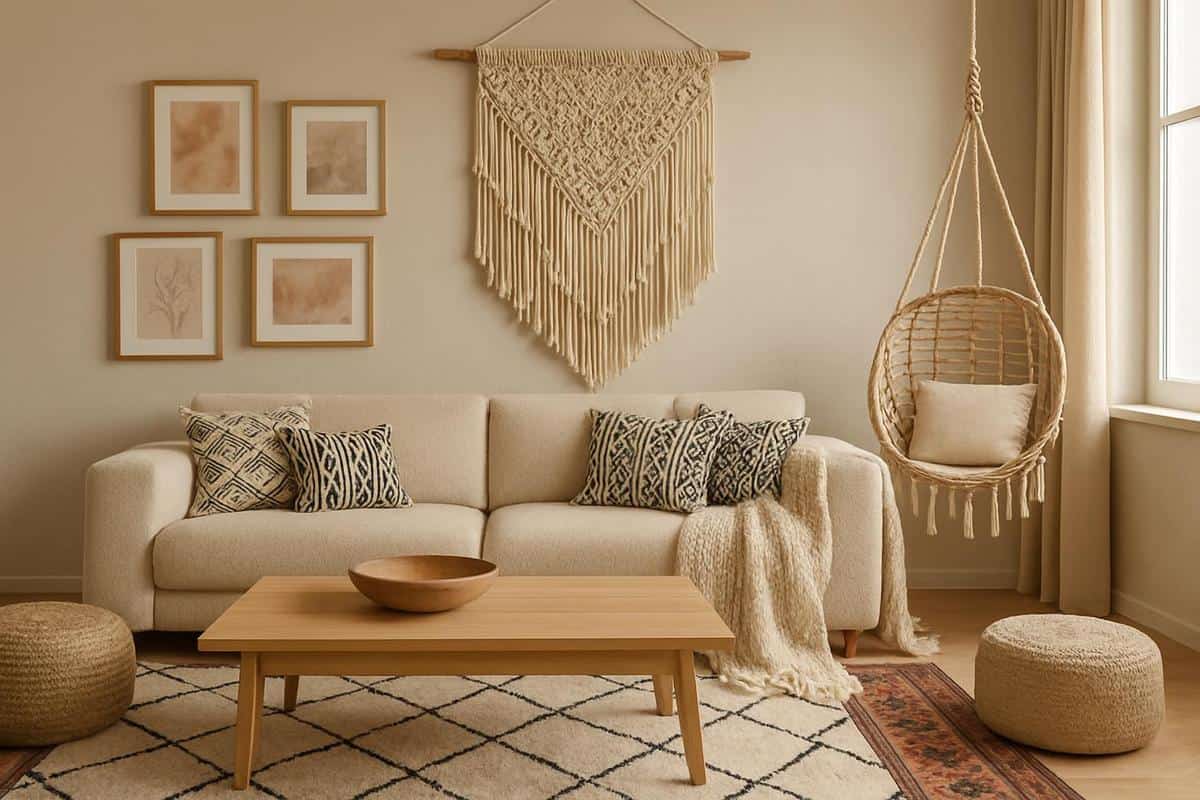 Textiles & matières naturelles : la touche bohème pour une déco salon scandinave bohème